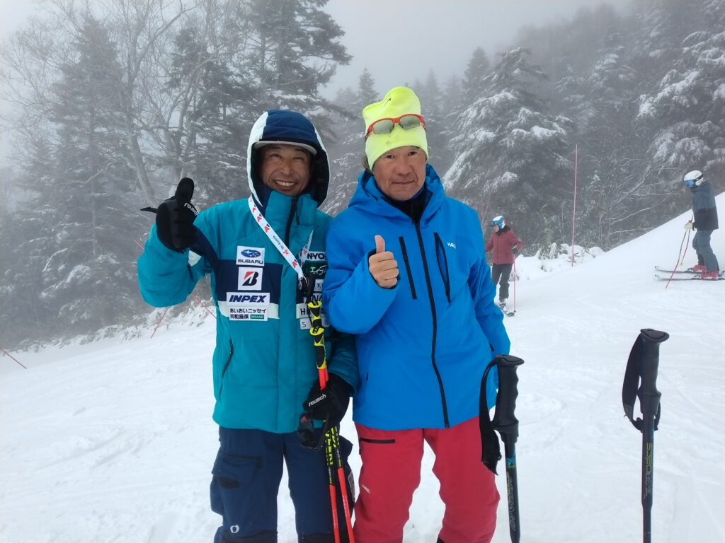 海和ゲレンデではSAJのユース合宿が行われていました。そのコーチの1人はSAJヘッドの安喰コーチでもう一人はSAJユースの岡田亮典ヘッドコーチでした。岡田コーチは私の北海道時代、ともに道連強化コーチとして全国中学やJr.オリンピックに選手を引率する間柄でした。7年ぶりぐらいの再会です。まさか、横手山でとは思いもよりませんでした。今は元気にユースのヘッドコーチとして頑張っています。なかなか熱い男です。かつてのコーチ仲間が活躍している姿を見ると、未だ未だじじい風を吹かすわけにはいきませんね。それにしてもアルペン界は狭し。