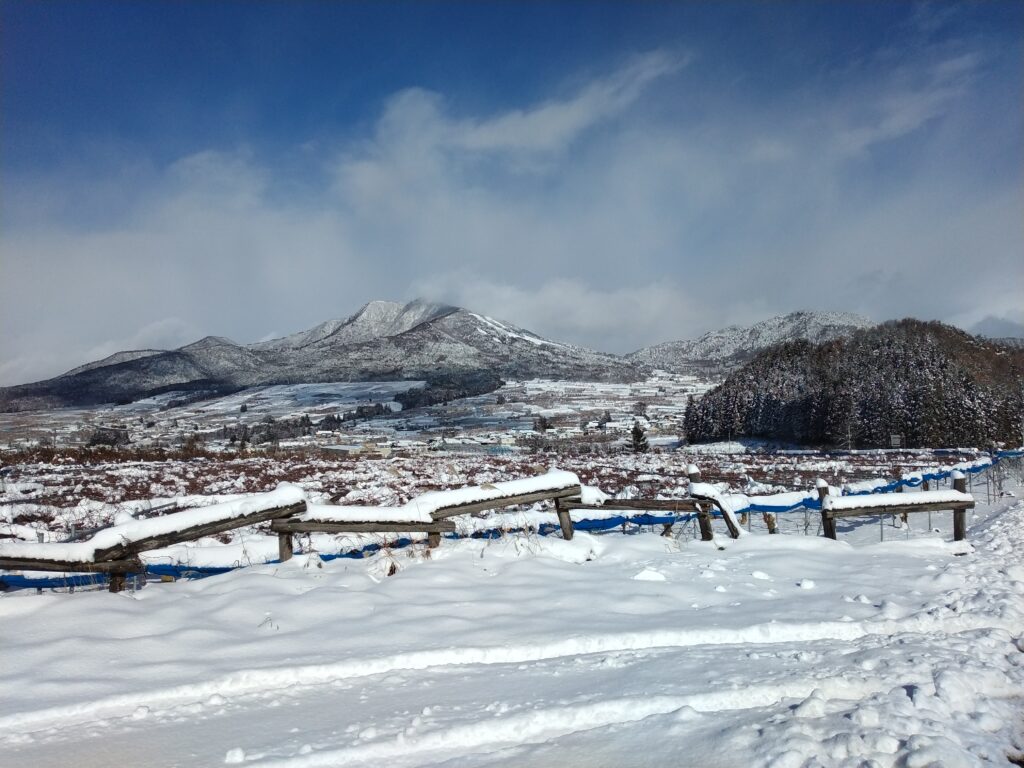 朝は清水カメラマンの鞄持ちで横手山に行きました。スキーではありません。パレスホテルの絵を撮りに行きました。その帰り道に高社山を望みました。夜間瀬スキー場もしっかり雪を抱いています。
