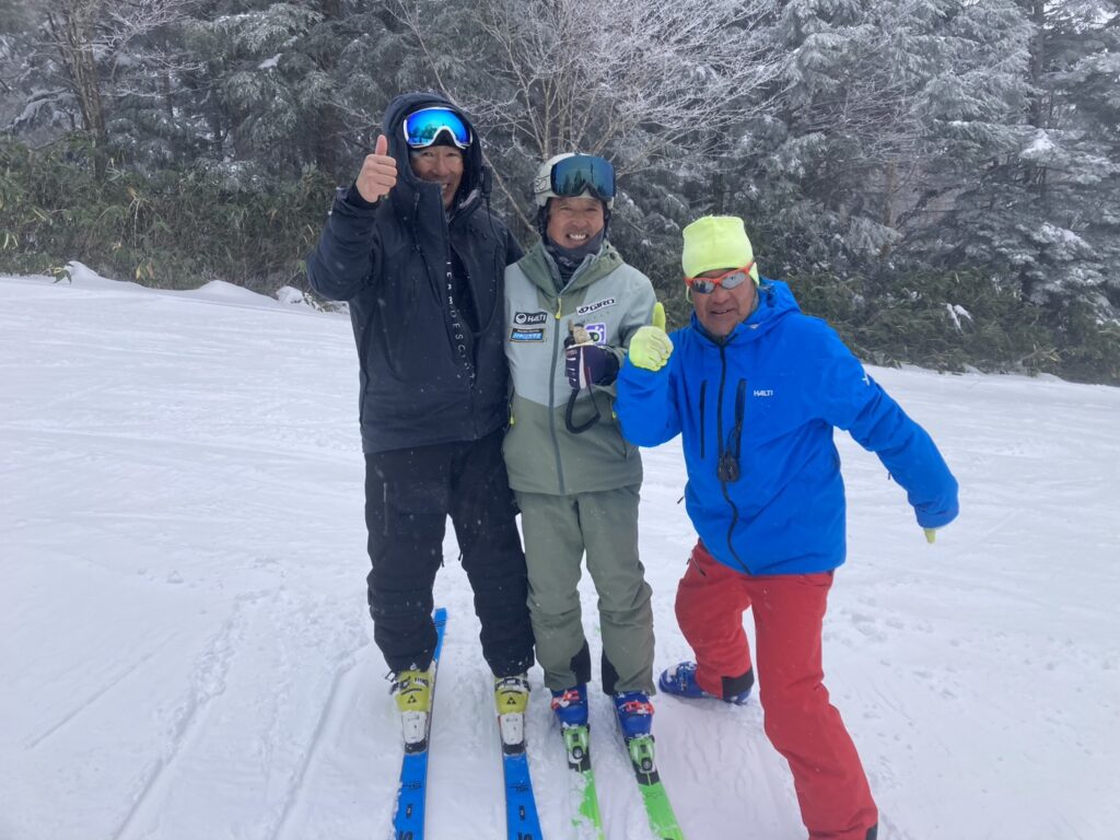 第5リフト沿いのコースは、木々に囲まれて風はそれ程無くでも寒い。コース状況はマシンの雪が入っていないのでやわやわでした。そこにSLのショートポールをセットして練習開始。緩斜面でセットの中のスケーティング、トップスピードに乗せるのに7旗門ぐらい漕ぎが必要な訳で、しっかり貯めを作って板の反発をもらってのスケーティングをしたいのです。柔らかいバーンで大きな動きでこれをやるのは、とても難しい。繊細さと大胆さ。緩斜面だからワンミスが致命的。意図的にこの状況での練習を選択した訳ではないのですが結果的に非常に良い練習になりました。与えられた環境をどう生かすか、思いを新たにしました。