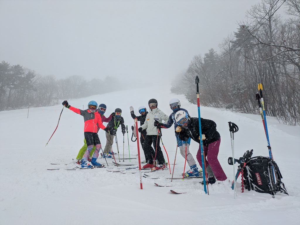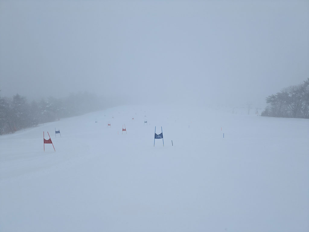 視界が悪かったこと、降雪が想定よりも早くゲレンデに積もり始めていて、ポールトレーニング前のフリートレーニング・ベースチェックがやり難い・滑り難かったのが残念でした。