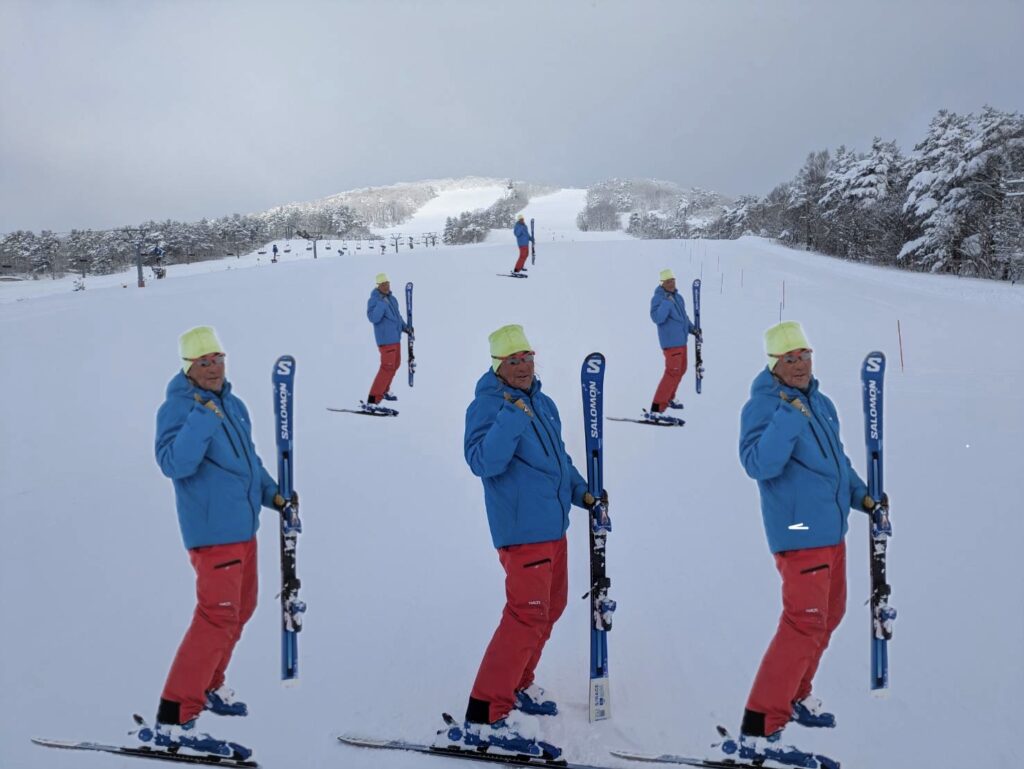 さて、本日のワタクシはというとゲートトレーニングを離れて、プライベートをご所望のお客様に1日レッスンをしてまいりました。行うバリエーションの意味を説明し、身体の使い方の要諦を説明して、実際に滑って見せてとゲートトレーニングとは違う流れのレッスンとなります。見本を見せる際には、身体の使い方をかなりデフォルメして解りやすく表現します。大体このサイクルを繰り返したわけですが、プライベートを希望されるだけあって、良い方向への変化がかなりありました。今日1日お客様と同じ本数滑った訳で結構疲労感がありますが、身体の近い方を表現することはワタクシ自身の良い勉強にもなりました。プライベートレッスンして頂いて有り難うございました。
