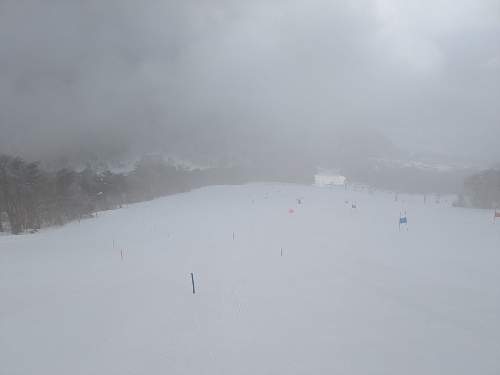 初日のこともあり、ポールやブラッシュマーカーの中だとまだ上手く行かない時もありましたが、フリートレーニングでの滑りは良い感じになって来ていると思います。
