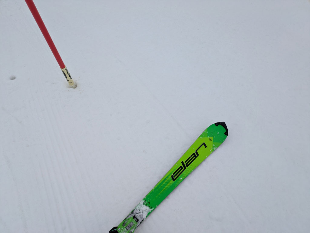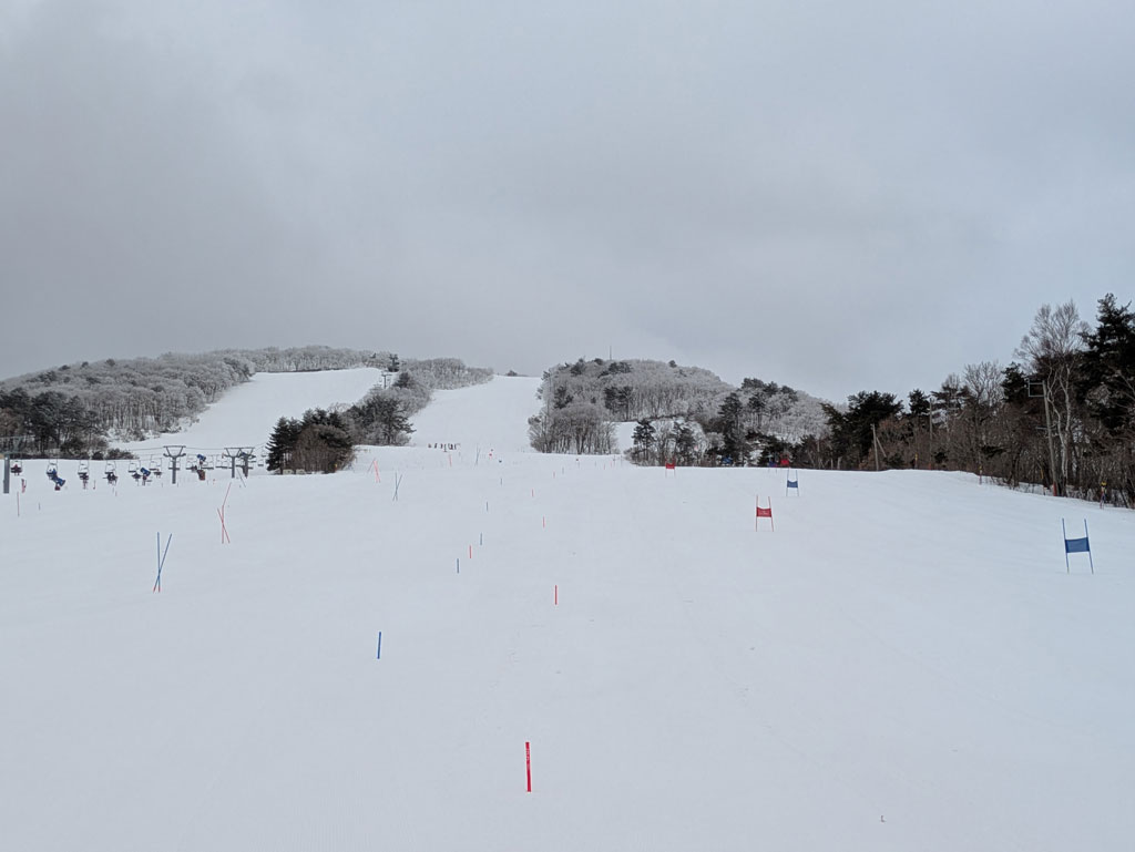 午後は気持ちの良い青空により表面が緩みましたが、コース整備を行うと、下からガリガリのバーンが出て来てまずまずの条件でトレーニングが出来ました。