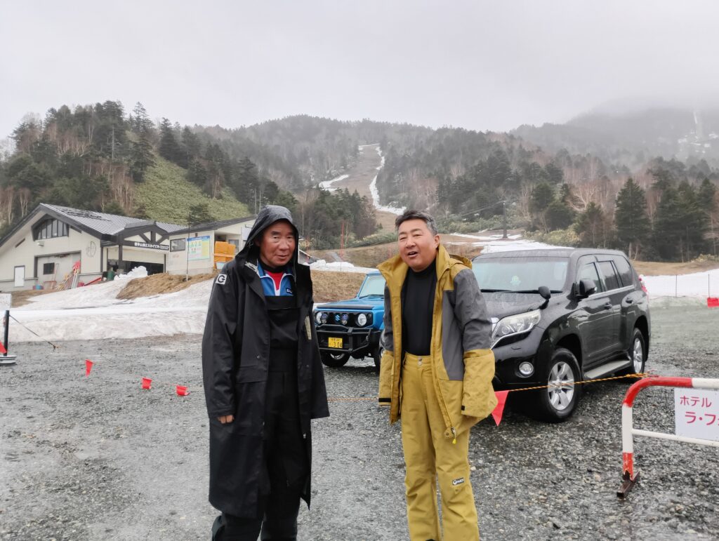 皆様お疲れ様でした。ホテルも雨。それでもいつもの早朝練習のスケジュール通り第2リフト乗り場近くの駐車場へ。登るにつれ雨が激しくなるような。早朝練習を予定していた他のチームもCXL。早朝練習のためご参集して頂いた皆様に本日の練習中止の旨をお伝えして、6時少し前に下山を開始しました。天気と泣く子には勝てません。あ~あ恨めしや~です。写真参照。